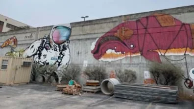 After snapping a picture, head south to East 12th Street and then west underneath the highway to one of our other favorite hidden murals tucked away next to Sabine Street. “Spaceman with Floating Pizza” was designed by Mike “Truth” Johnson and can be found at 1201 Red River Street. One of Johnson’s best known works throughout Austin, he lived in Asia and the Middle East for four years with his wife which helped shape his creative processes. His major influences have been comic books, Jesus Cristo, and street art which he uses to bring the message of joy to his viewers.
